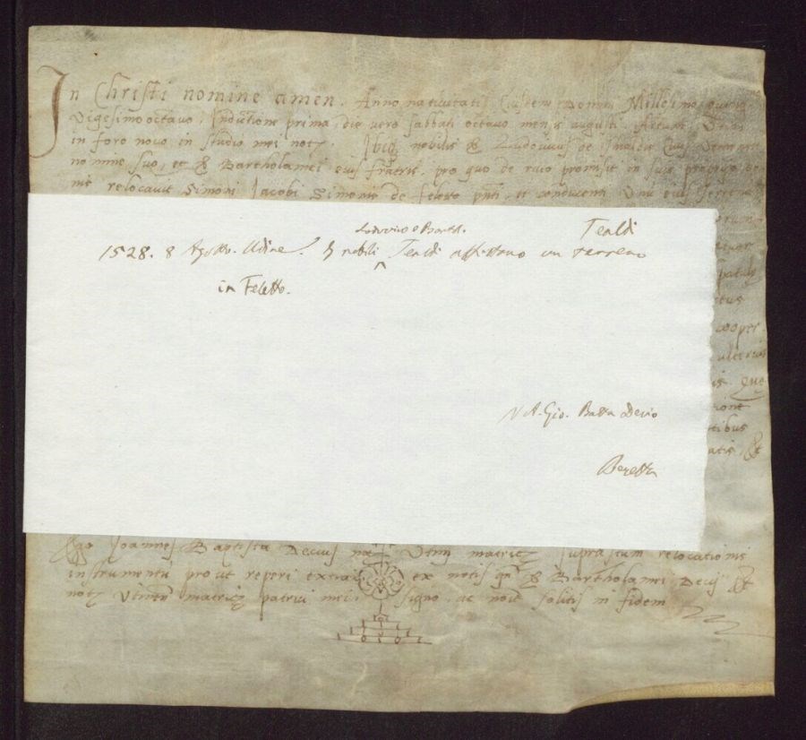 I nobili Lodovico e Bartolomeo Tealdi affittano un terreno in Feletto