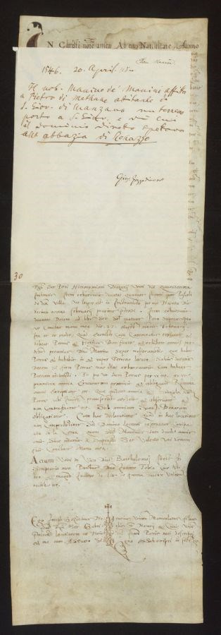 Il nobile Manino de' Manini affitta a Pietro di Methuna abitante in San Giovanni di Manzano un terreno posto a San Giovanni e di cui il dominio diretto spettava all'abbazia di Rosazzo