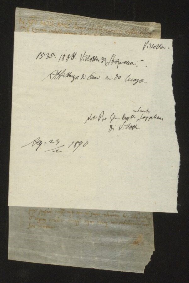 Nel regesto "detto luogo" si riferisce a Villotta di Sbrojavacca, data topica Sul cartiglio in basso è presente un'annotazione: Acquistato 23/2 1890