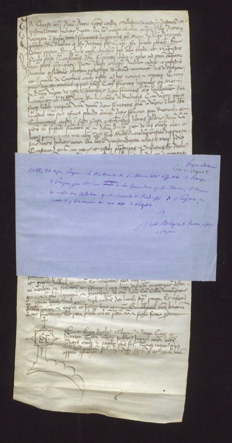 La Fraternita di Santa Maria dell'Ospitale di Borgo di Venzone, per 180 lire affranca a Ser Bernardino quondam Ser Floriano d'Amaro e moglie sua Maddalena quondam Ser Leonardo de Radiussi di Venzone, un livello di 9 lire annue su una casa in Venzone