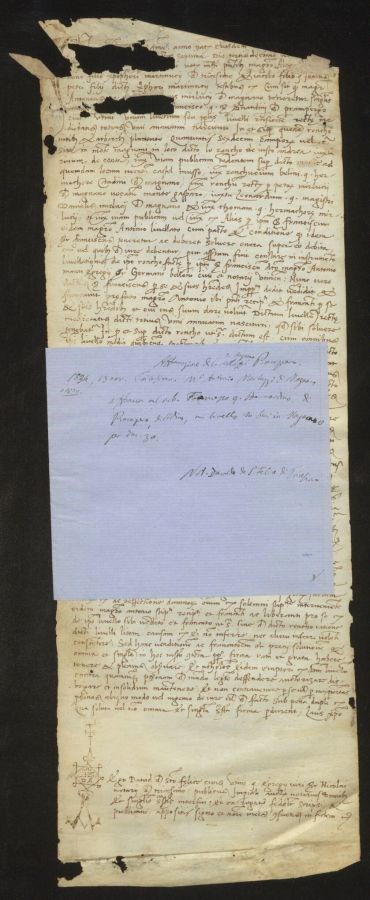 Non sono stati eseguiti interventi di restauro La parte superiore presenta degli strappi considerevoli che coinvolgono anche sezioni di testo