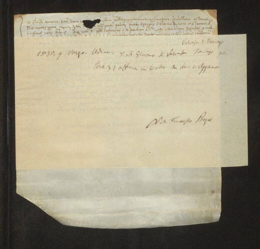 Il nobile Giacomo di Valvasone Maniago per lire 31 affranca un livello su beni in Azzano