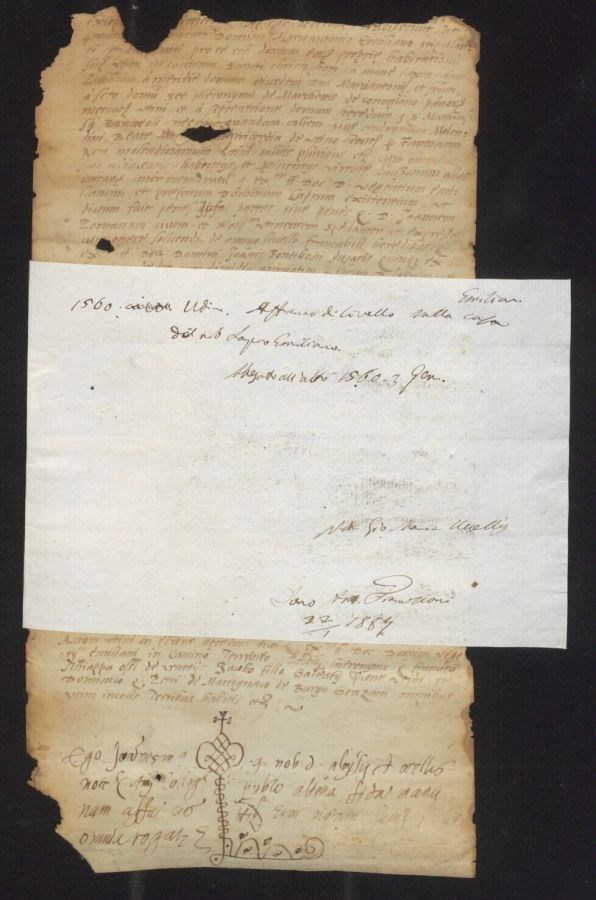 Sul cartiglio in basso ci sono delle annotazioni: Allegato all'atto 1560 3 gennaio; dono Antonio Francesconi 22/1 1887