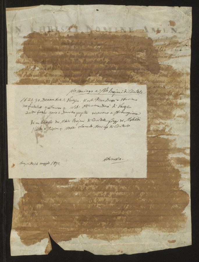 Sul cartiglio in basso è presente un'annotazione: Atto mutilo