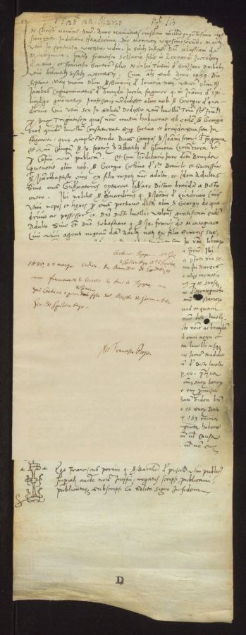 Ser Bernardino di Codroipo riceve francamento di livello su beni in Fagagna, ora dei Cechini e prima di Giacomo figlio del maestro di grammatiche Giovanni di Spilimbergo