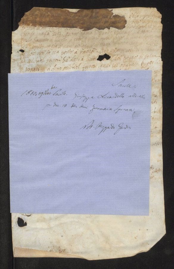 Scolorimento dell&39;inchiostro e striscia di acquarello compromettono in parte la lettura