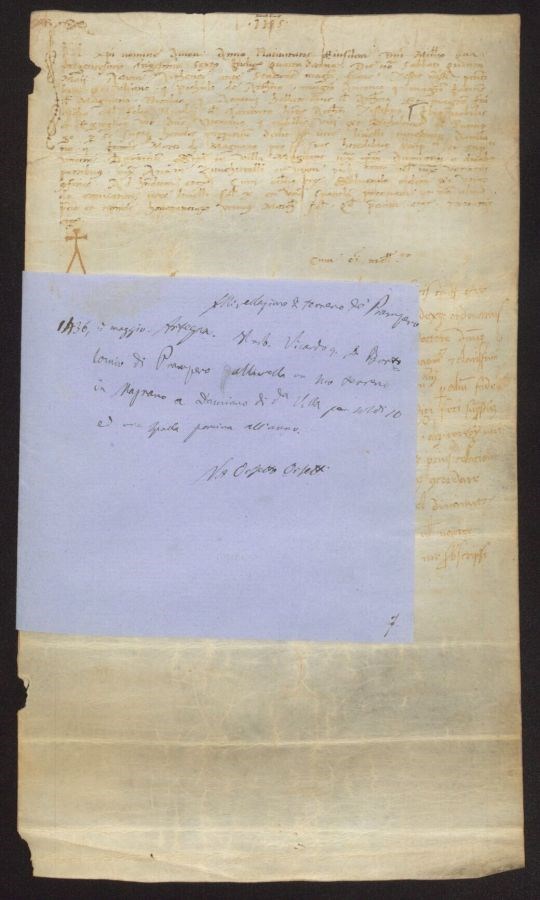 Il nobile Vicardo quondam domino Bortolomio di Prampero allivella un suo terreno in Magnano a Damiano di detta villa per soldi 10 e una spalla porcina all'anno