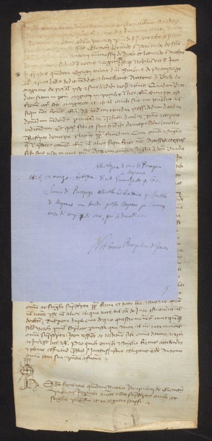 Il nobile Giacomo Giusto quondam Cavaliere Simone di Prampero allivella ad Antonio quondam Bortolo di Magnano una braida presso Magnano per l'annuo censo di conzi 7 di vino, per 4 ducati