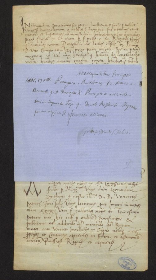 Bortolomeo, Giovanni Antonio e Barnaba quondam Domino Francesco di Prampero allivellano beni in Magnano a Toia quondam Daniele Rossani di Magnano per una mezzina di frumento all'anno