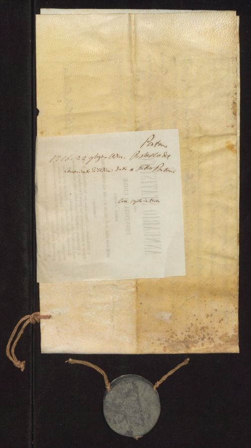 Sul cartiglio in basso è presente un'annotazione: Con sigillo in teca