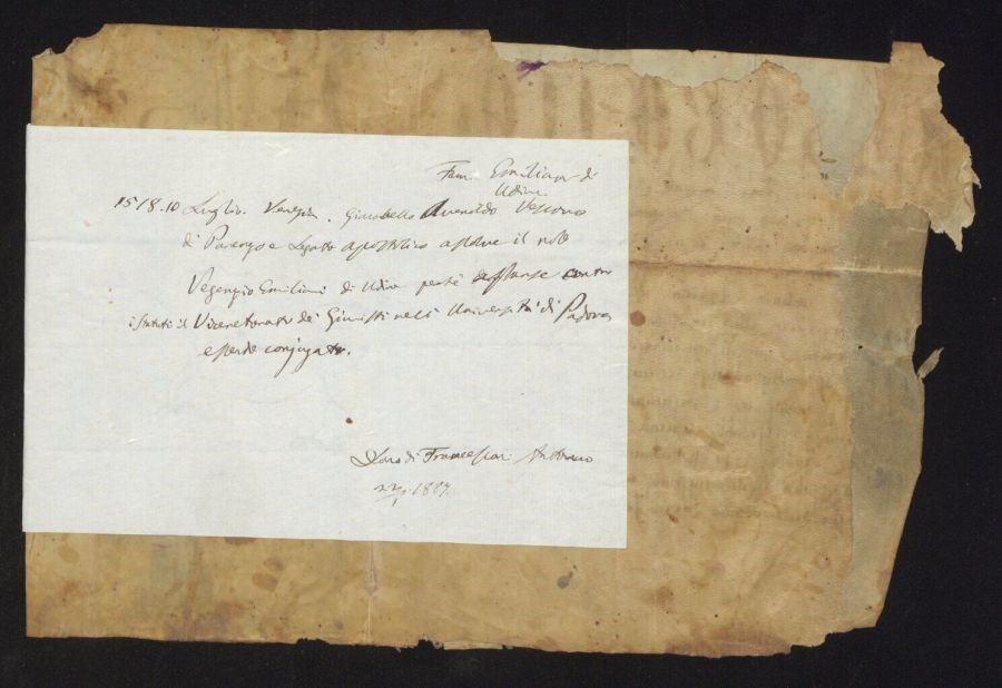 Giacobello Averoldo vescovo di Parenzo e legato apostolico assolve il nobile Vegenzio Emiliani di Udine perchè assunse contro i statuti il Vice[...] de' Giusti nell'università di Padova essendo coniugato