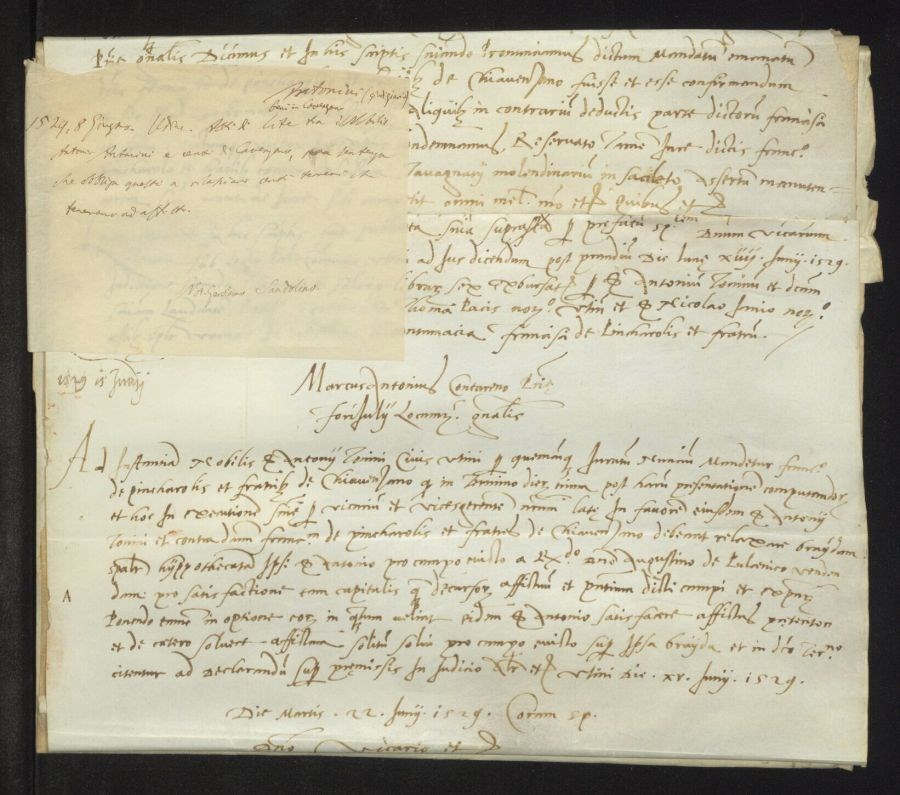 Atti di lite tra il nobile Antonio Antonini e di certi Cavenzano, con sentenza che obbliga questi a rilasciare certi terreni che tenevano ad affitto