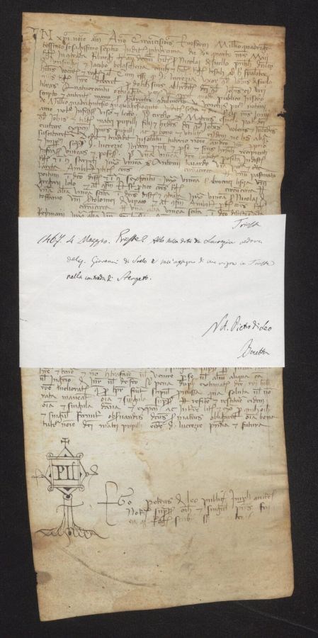 Atto sulla dote di Lucrezia vedova del quondam Giovanni di <Snelo> e sull'assegno di una vigna in Trieste nella contrada di Sterpeto