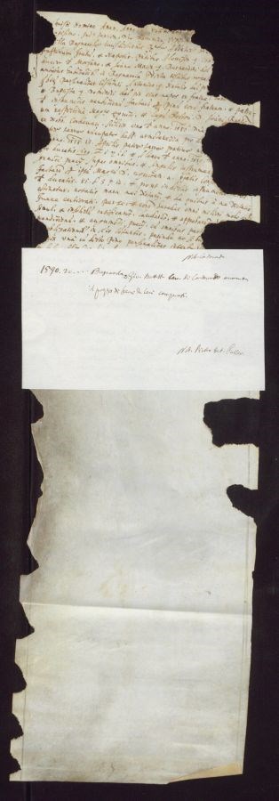 Non sono stati eseguiti interventi di restauro Il documento è strappato e rovinato lungo tutti i bordi; ampie parti di testo sono andate perse