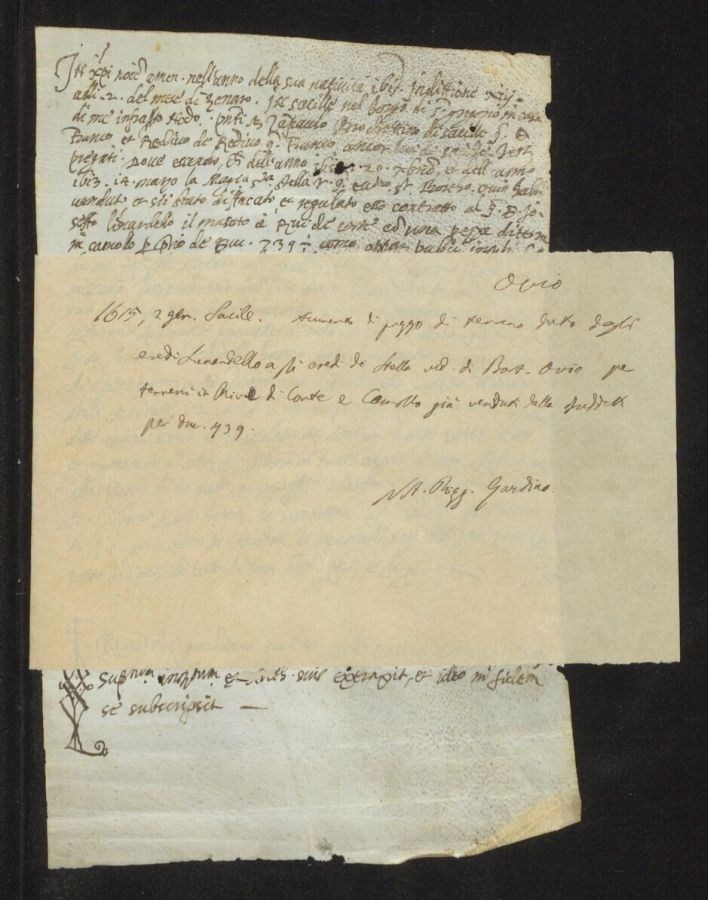Aumento di prezzo di terreno dato agli eredi Lunardello a gli eredi di Stella vedova di Bortolomeo Ovio per terreni in Rive di Corte e Camollo già venduti dalla suddetta per ducati 739