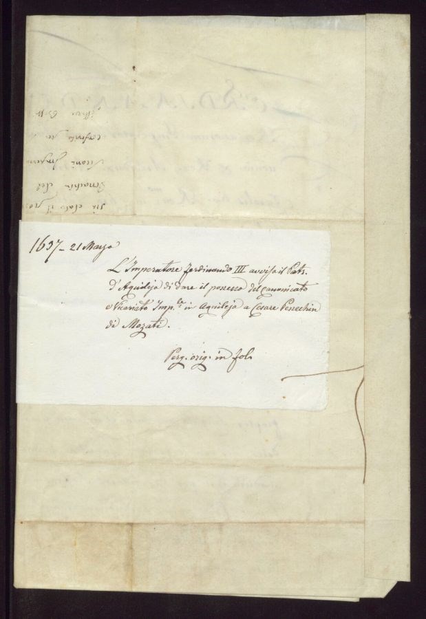 L'Imperatore Ferdinando III avvisa il patriarca di Aquileja di dare il possesso del canonicato e vicariato imperiale in Aquileja a Cesare Penechin di Mozati