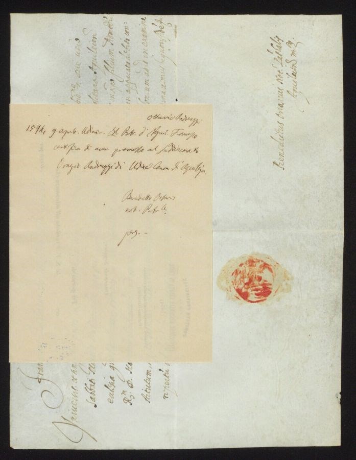 Sul cartiglio in basso c’è un’annotazione: Pergamena