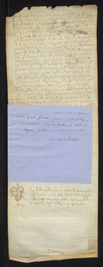 Sulla plica inferiore è presente un foro e traccia di filo passante di cotone