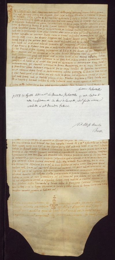 Ser Bernardino Robertella quondam notaio Andrea cede miglioramenti su beni di Cereseto ed il fondo viene venduto al nobile Bernardino Antonini