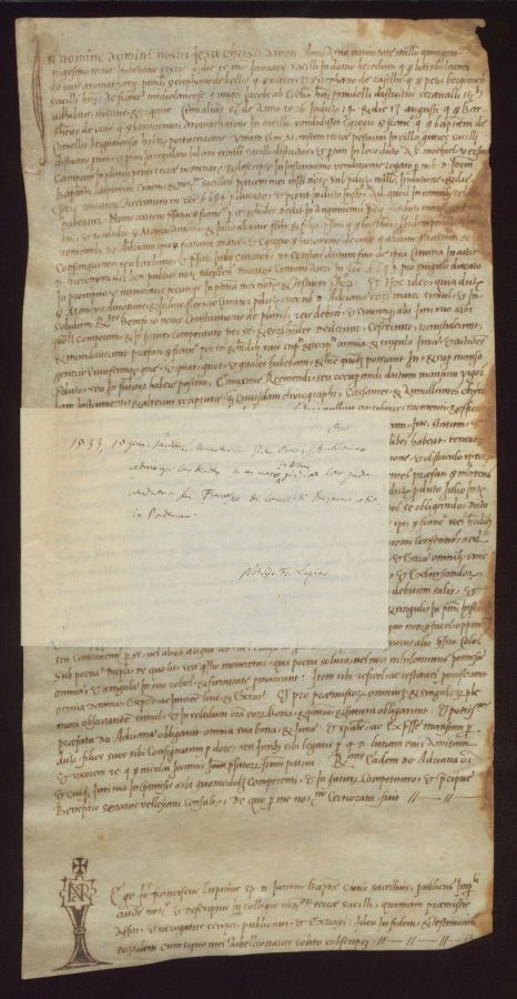 Marcantonio e Giulio Ovio quondam Ser Bartolomeo cedono ogni loro diritto su un maso in Bibano già da loro padre venduto a Ser Francesco de Comelli di Bergamo abitante in Pordenone