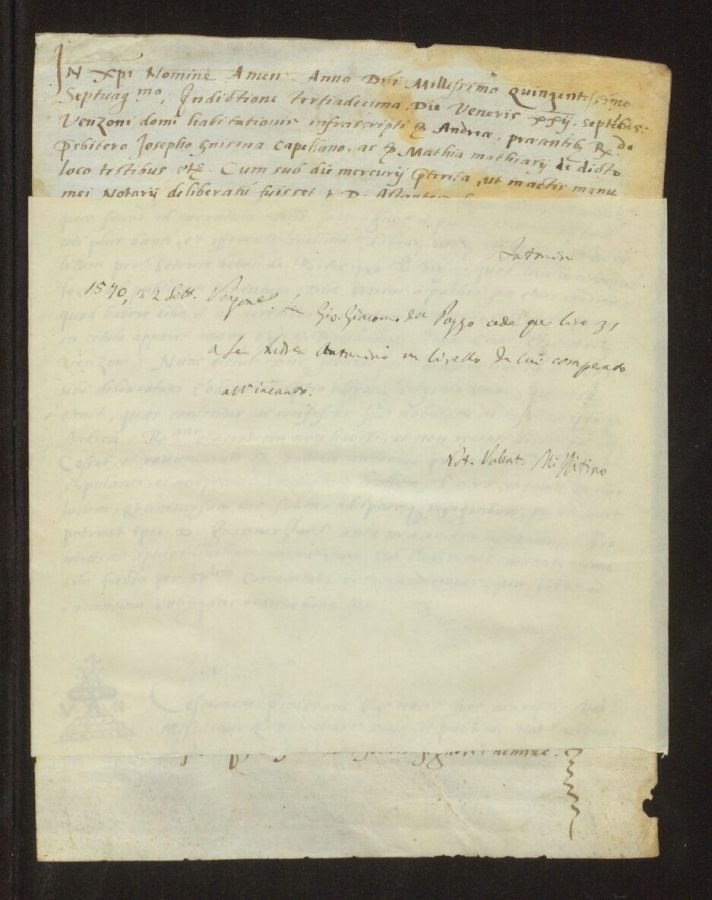 Ser Giovanni Giacomo del Pozzo cede per lire 31 a ser Andrea Antonini un livello da lui comperato all'incanto