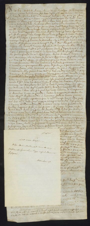 Il signor Domenico Balbiani cede casa e tre campi in Monfalcone alla signora Laura Rizzo moglie di Domenico Passegnani