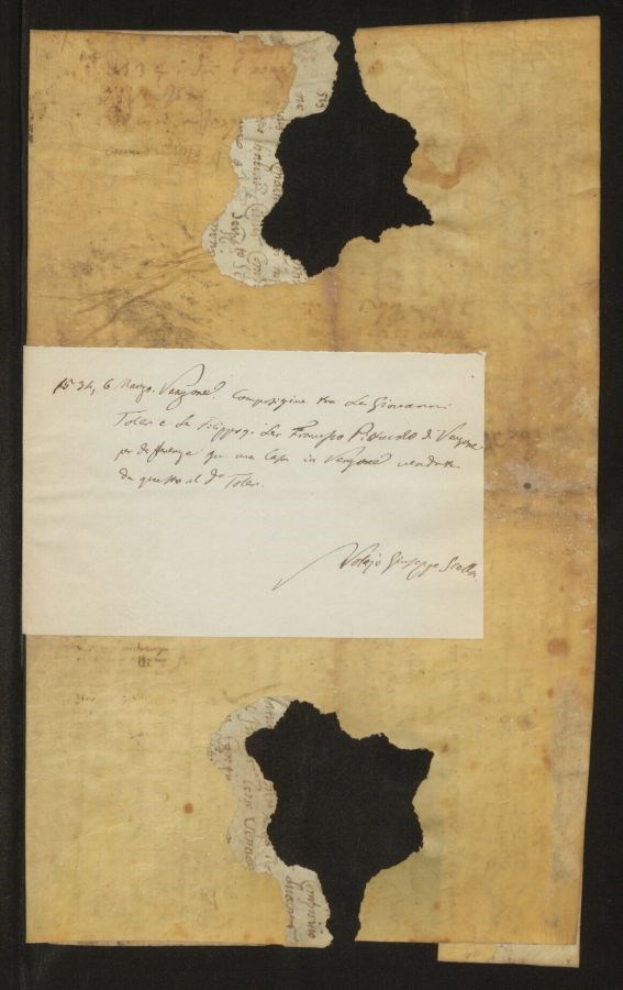 Non sono stati eseguiti interventi di restauro Su entrambi i lati sono presenti due strappi considerevoli