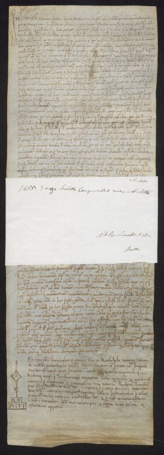 Tracce del margine dello specchio di scrittura superiore e laterale sinistro in mina di piombo