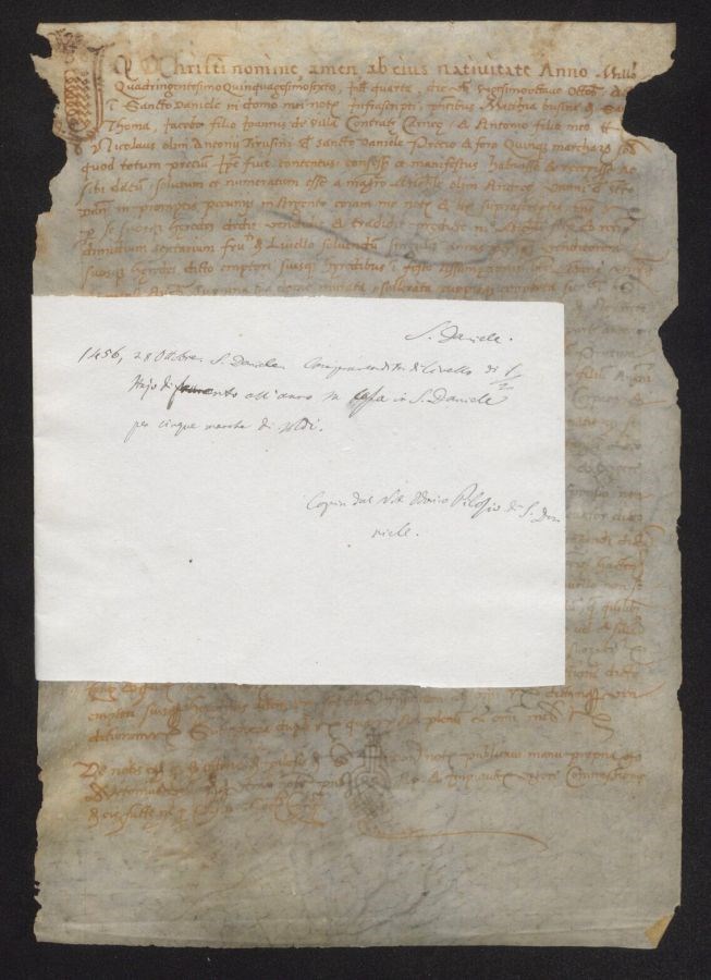 Compravendita di livello di 1/2 staio di frumento all'anno su casa in San Daniele per cinque marche di soldi