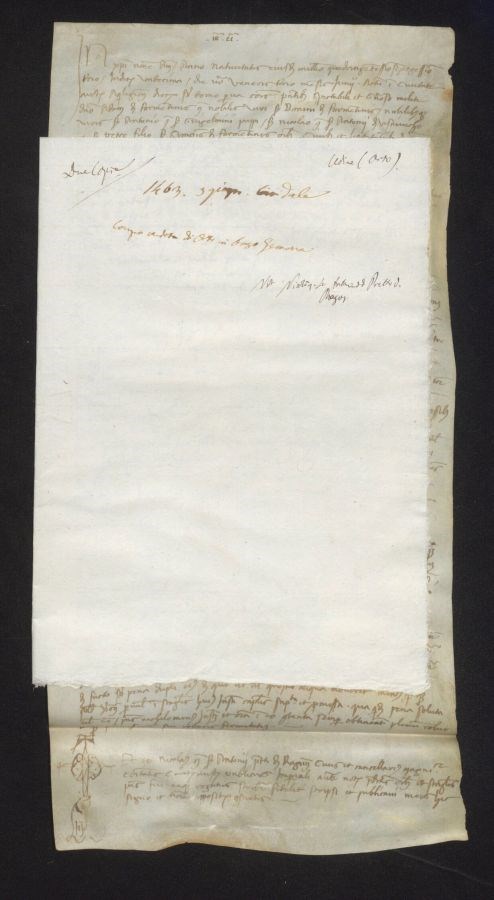 Traccia di rigatura in mina di piombo del margine dello specchio di scrittura superiore e laterale