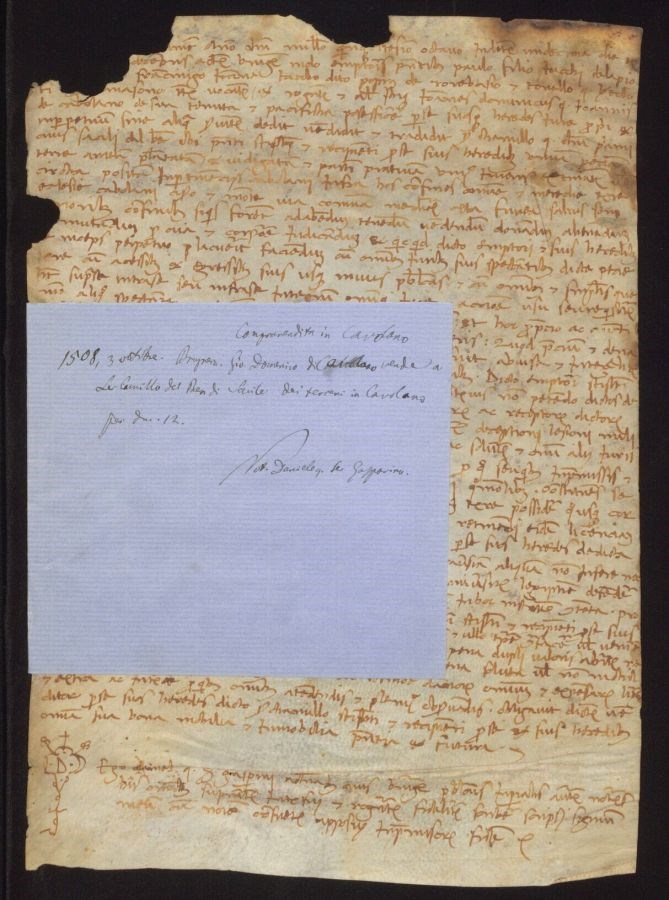 Giovanni Domenico di Cavolano vende a ser Camillo del Ben di Sacile dei terreni in Cavolano per ducati 12