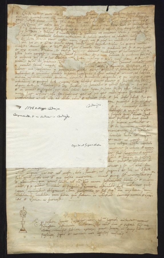 Non sono stati eseguiti interventi di restauro Totalmente foderato con carta antica vergata di due tipi