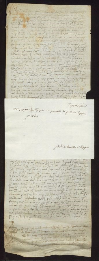 Sul margine laterale sinistro traccia di filo passante di cotone