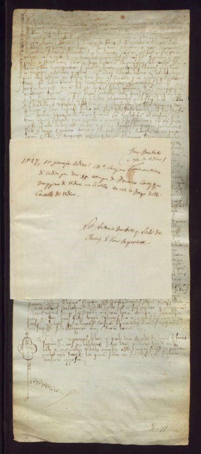 Maestro Canziano Tramontino di Udine per ducati 35 compra da Domenico Corazza drappiero di Udine un livello su case in Borgo delle Cavalle di Udine