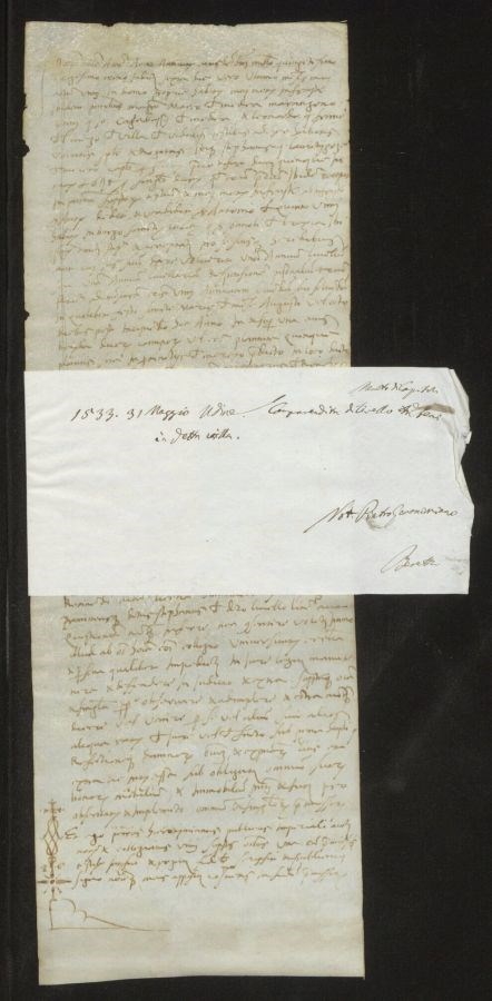 Nel regesto "detta villa" si riferisce a Mereto di Capitolo, il cui nome è indicato in un appunto in alto a destra sul cartiglio Sul cartiglio in basso a destra c'è un'annotazione: Beretta