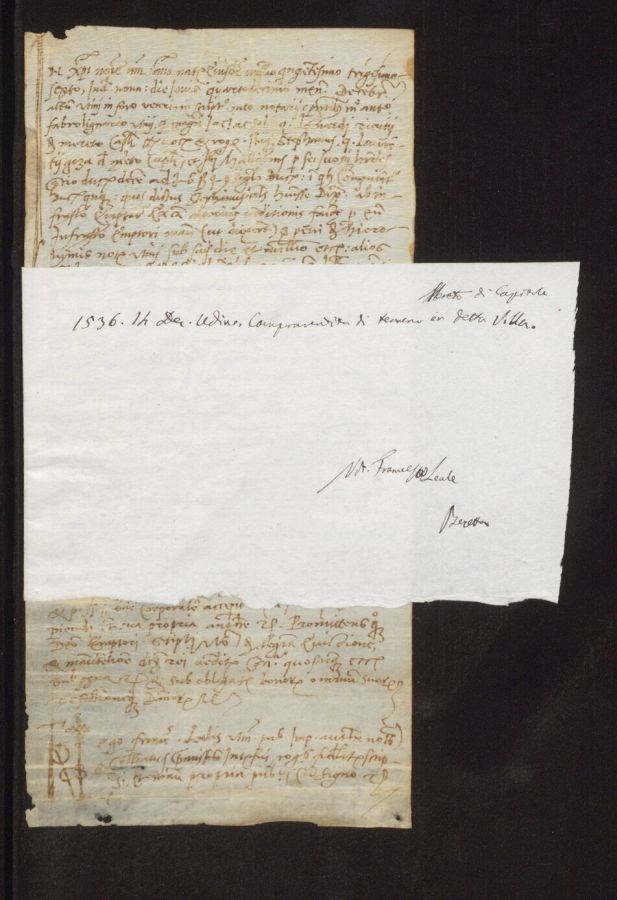 Sul cartiglio in basso a destra c'è un'annotazione: Beretta Nel regesto "detta villa" può riferirsi a Udine, data toipica, o a Mereto di Capitolo, il cui nome è appuntato in alto a destra nel cartiglio