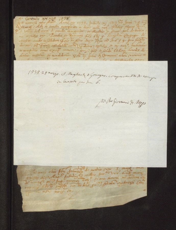 Sul bordo superiore e sul retro della pergamena sono presenti delle annotazioni con un inchiostro diverso rispetto a quello del testo del documento