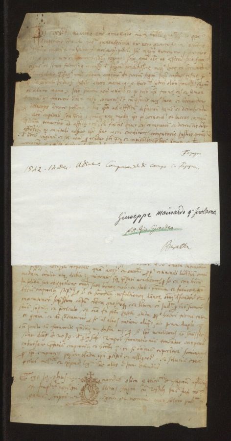 Non sono stati eseguiti interventi di restauro Il margine risulta frastagliato in corrispondenza dei punti in cui la pergamena era arrotolata