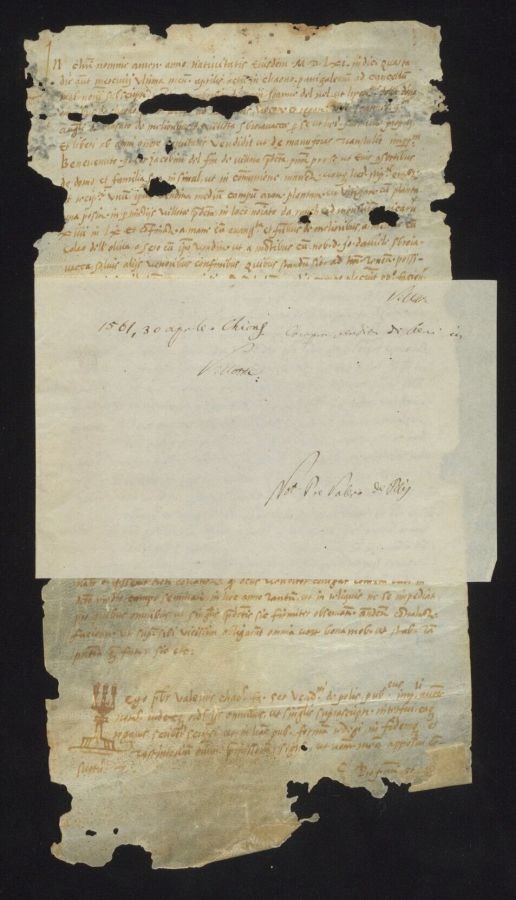 Presenza di strappi e fori che impedisce una completa lettura del documento
