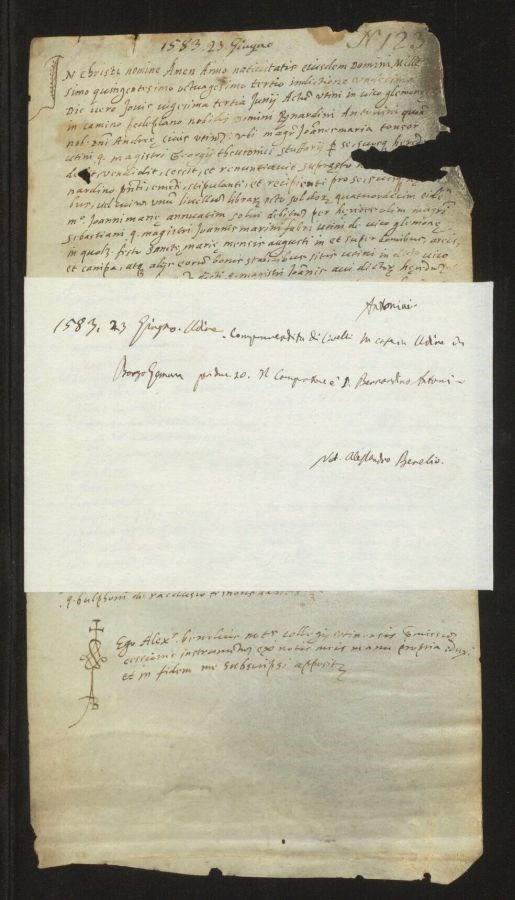 Compravendita di livelli su case in Udine in borgo Gemona per ducati 20. Il compratore è dominus Bernardino Antonini