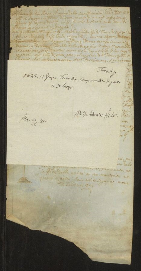 Nel regesto "detto luogo" si riferisce a Forni di Sopra, data topica Nel cartiglio in basso è presente un'annotazione: Acquistato 23/2 1890