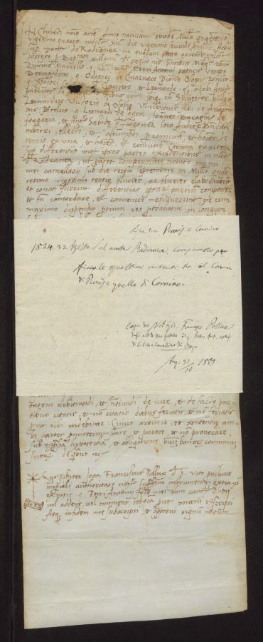 Compromesso per finire le questioni vertenti tra il comune di Peonis e quello di Cornino