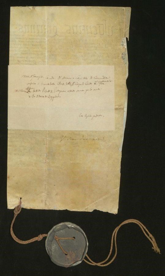 Sul cartiglio in basso è presente l'annotazione: Con sigillo perduto