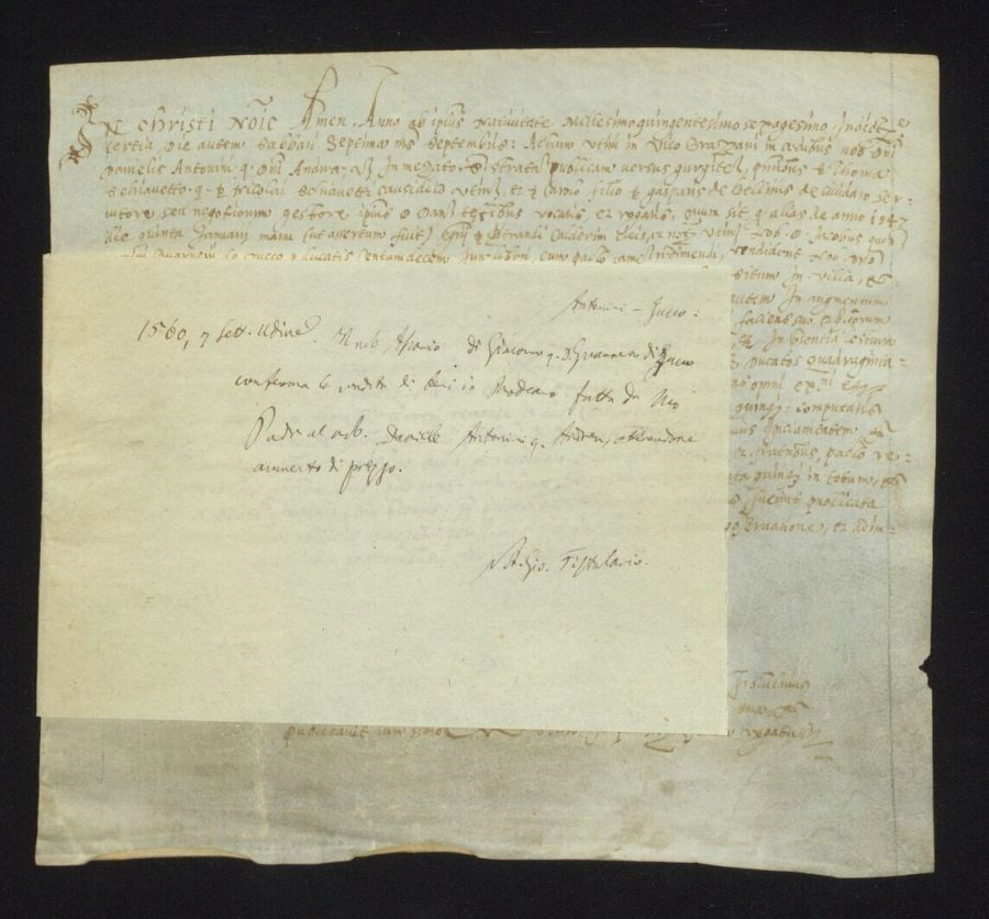 Il nobile Ascanio di Giacomo quondam dominus Guarneri di Zucco conferma la vendita di beni in Rodeano fatta da suo padre al nobile Daniele Antonini quondam Andrea, ottenendone aumento di prezzo
