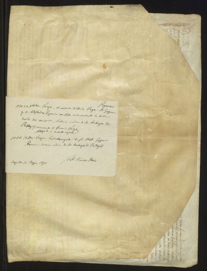 Regesto 1: Il mercante di libri in Venezia Dominus Gaspare quondam Dominus Alessandro Paganini confessa aver ricevuto la dote della sua consorte Antonia vedova di Ser Ambrogio de Passagiis mercante di ferro in Venezia. Allegato il contratto nuziale