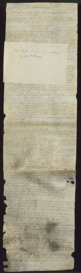 Pergamena cucita a un&39;altra pergamena sul lato più corto