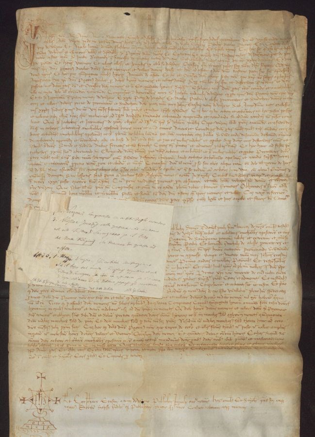 Regesto 1: Compromesso in arbitri degli uomini di Alesso e Joncedis nella questione che aveano col nobile Tristano di Savorgnano per il bosco sul monte Filipiais che tenevano da questo ad affitto
