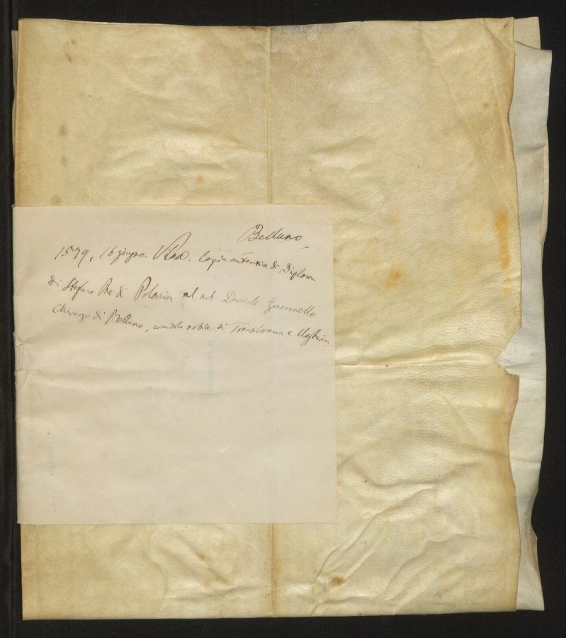 Copia autentica di diploma di Stefano re di Polonia al nobile Daniele Zucconello chirurgo di Belluno, creandolo nobile di Transilvania e Ungheria