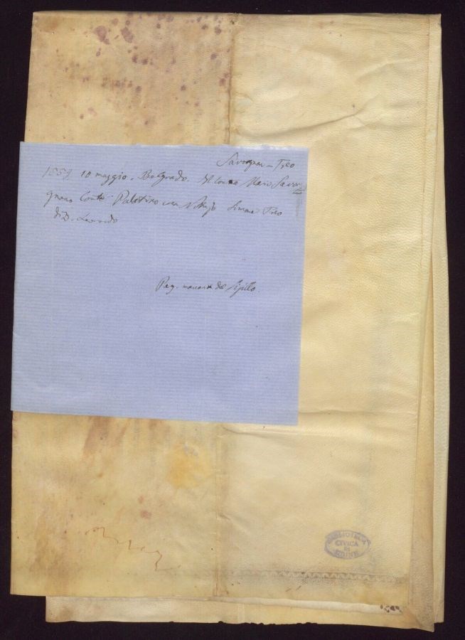 Sul cartiglio in basso c’è un’annotazione: Pergamena mancante di sigillo