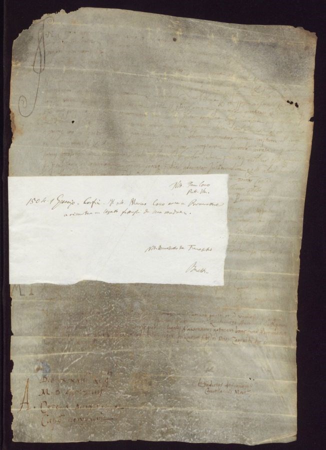 Non sono stati eseguiti interventi di restauro Supporto imbrunito con zone di trasparenze, inchiostro a tratti evanito